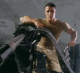 But she really didn't need to twist my arm to make me post these...guys in uniform are some of the hottest there are.  I love a good buzz cut and some chiseled abs.  YUM!